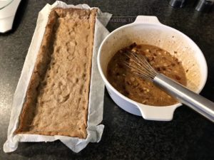 - Zet de vorm dan in de oven en bak hem 10 minuten. Haal hem daarna uit de oven en laat even afkoelen. Zet de oventemperatuur nu hoger op 200 graden.