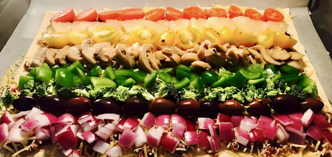 Regenboog pizza recept – Bladerdeeg pizza met groenten voor kinderen